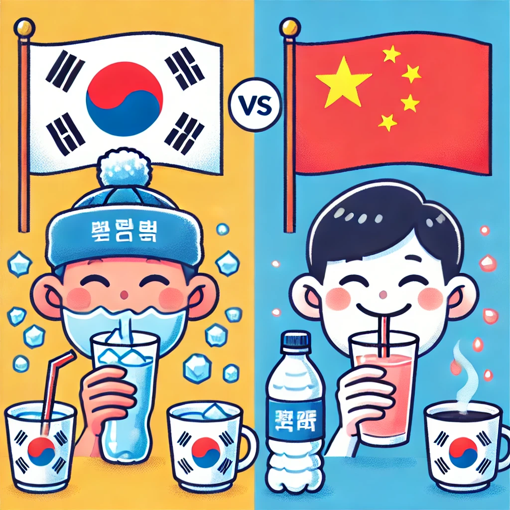 | 문화 차이 | 한국인은 얼음물을 선호 | 중국인은 뜨거운 물을 선호 |